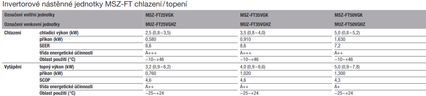 3,5 kW Mitsubishi MSZ-FT35VGK + MUZ-FT35VGHZ hyperheating vykurovanie do -25