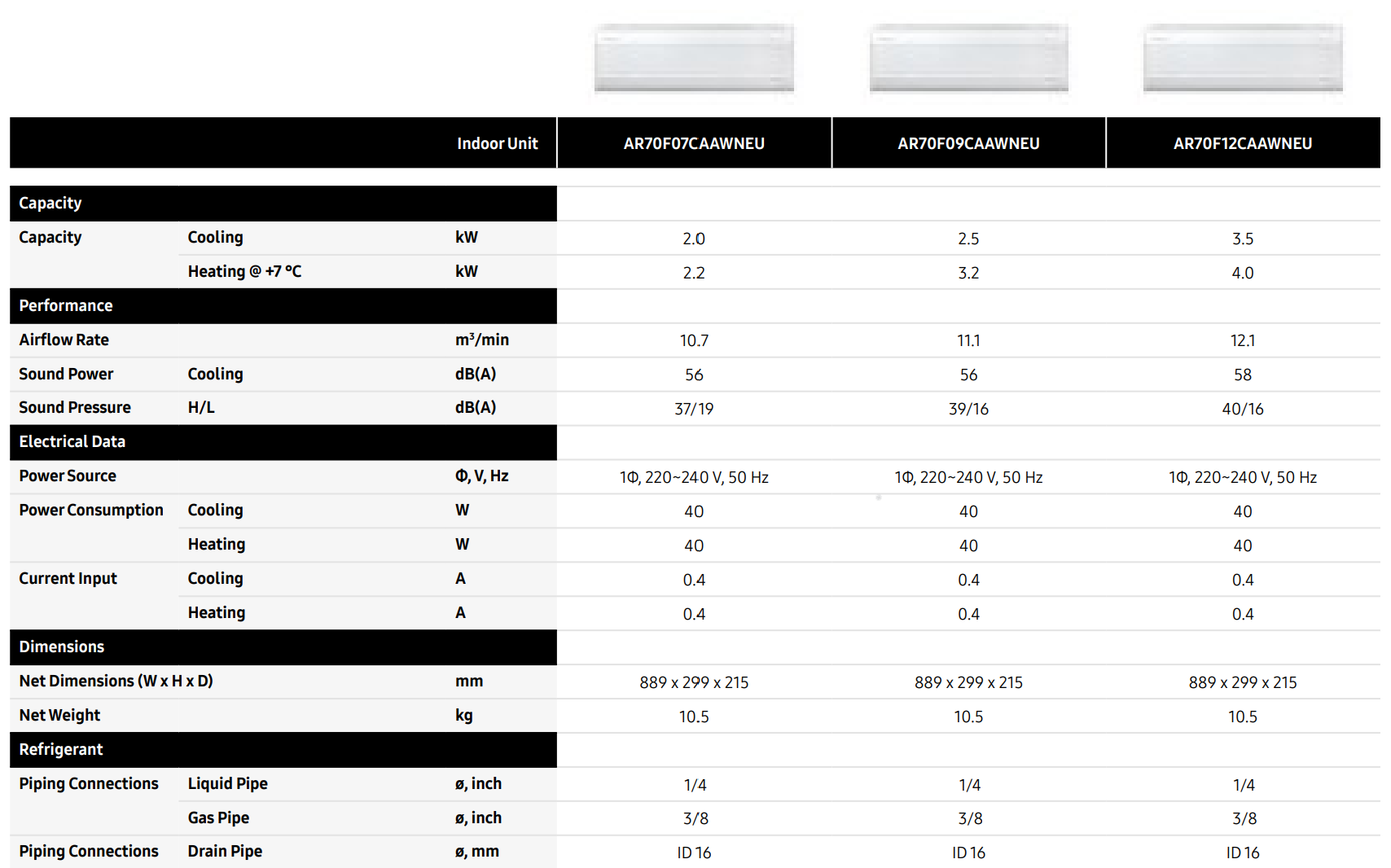 Samsung multisplit AJ052TXJ3KG/EU 5,2 kW + 2x 2 kW Elite S2 AR70F07CAAWNEU + 1x 3,5 kW Elite S2 AR70F12CAAWNEU