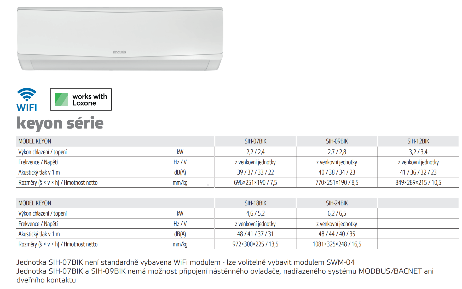 Sinclair multisplit MV-E14BI2 4,1 kW + 1x 2,2 kW Keyon SIH-07BIK + 1x 2,7 kW Keyon SIH-09BIK