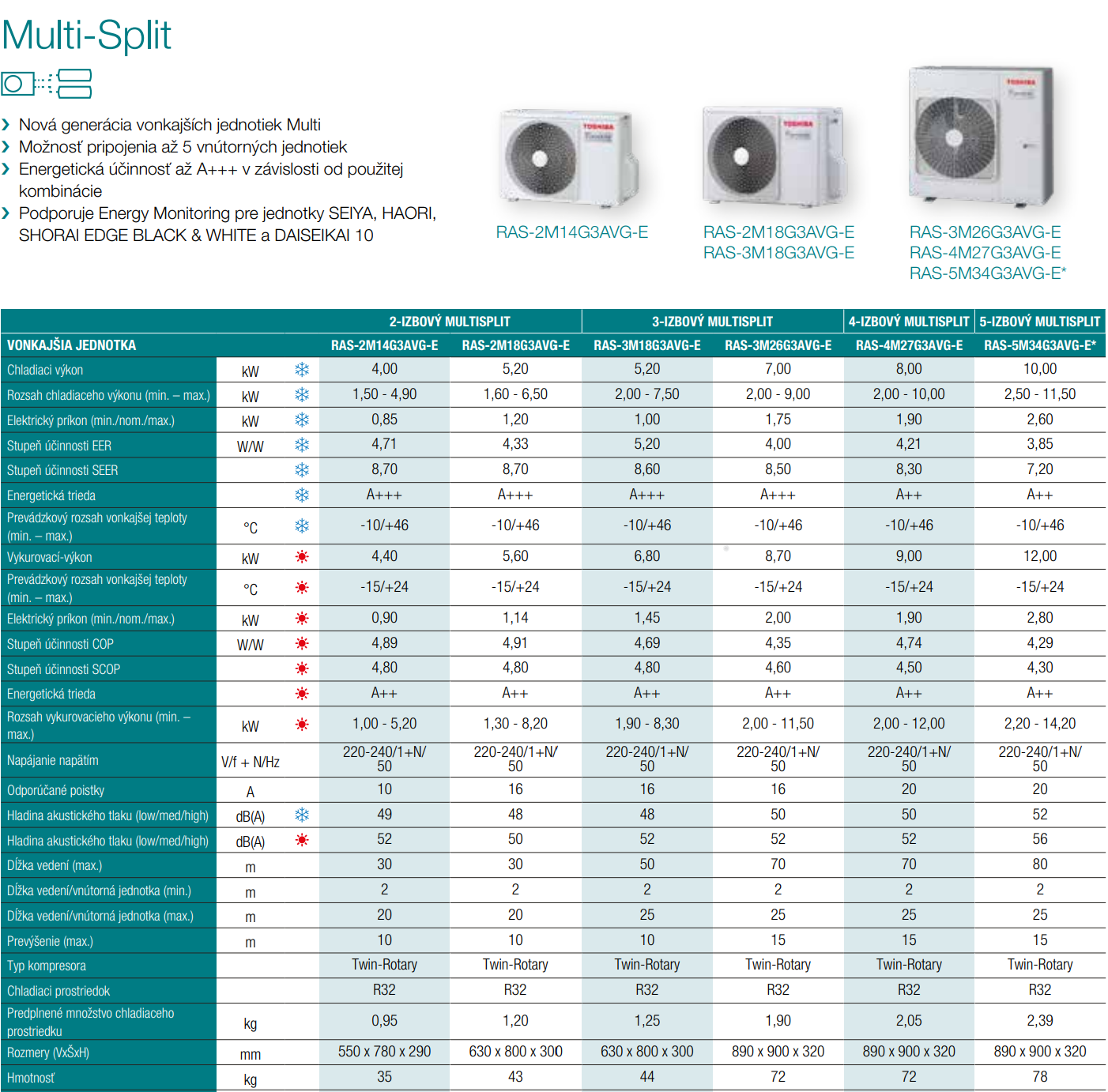 Toshiba multisplit RAS-3M26G3AVG-E 7,5 kW + 2x 3,3 kW SEIYA RAS-B13B2KVG-E2 + 1x 5 kW SEIYA RAS-B18B2KVG-E2